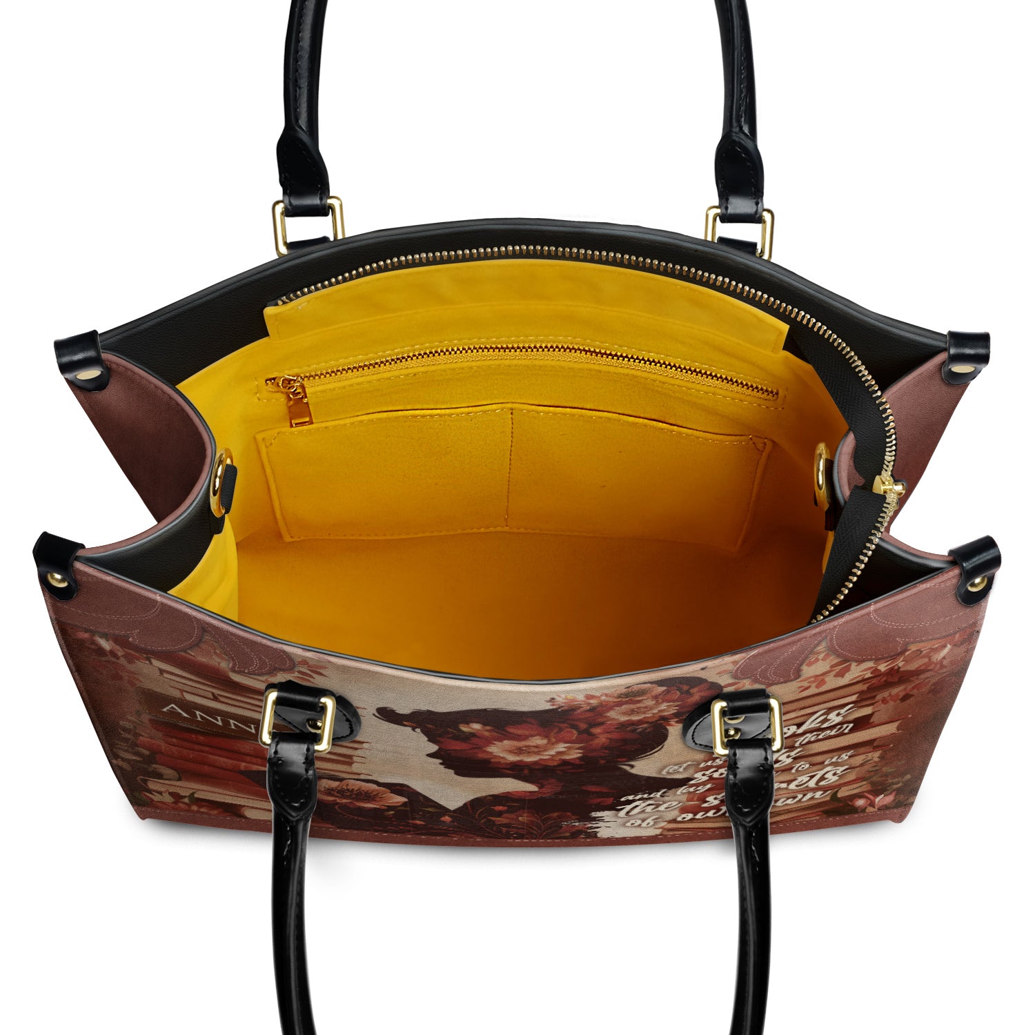 Our custom leather handbags feature a full zip closure that not only keeps your belongings safe and sound but also adds a touch of bookish style.