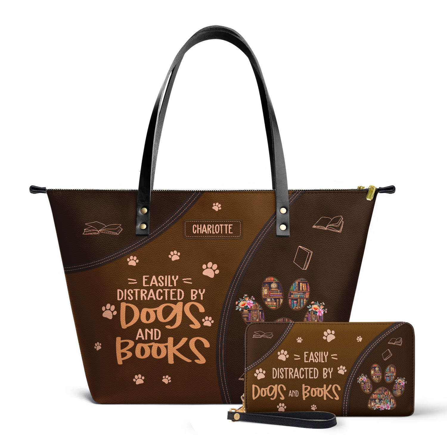 Product Name: Easily Distracted By Dogs And Books TTRZ28103727GU Leather Tote Bag