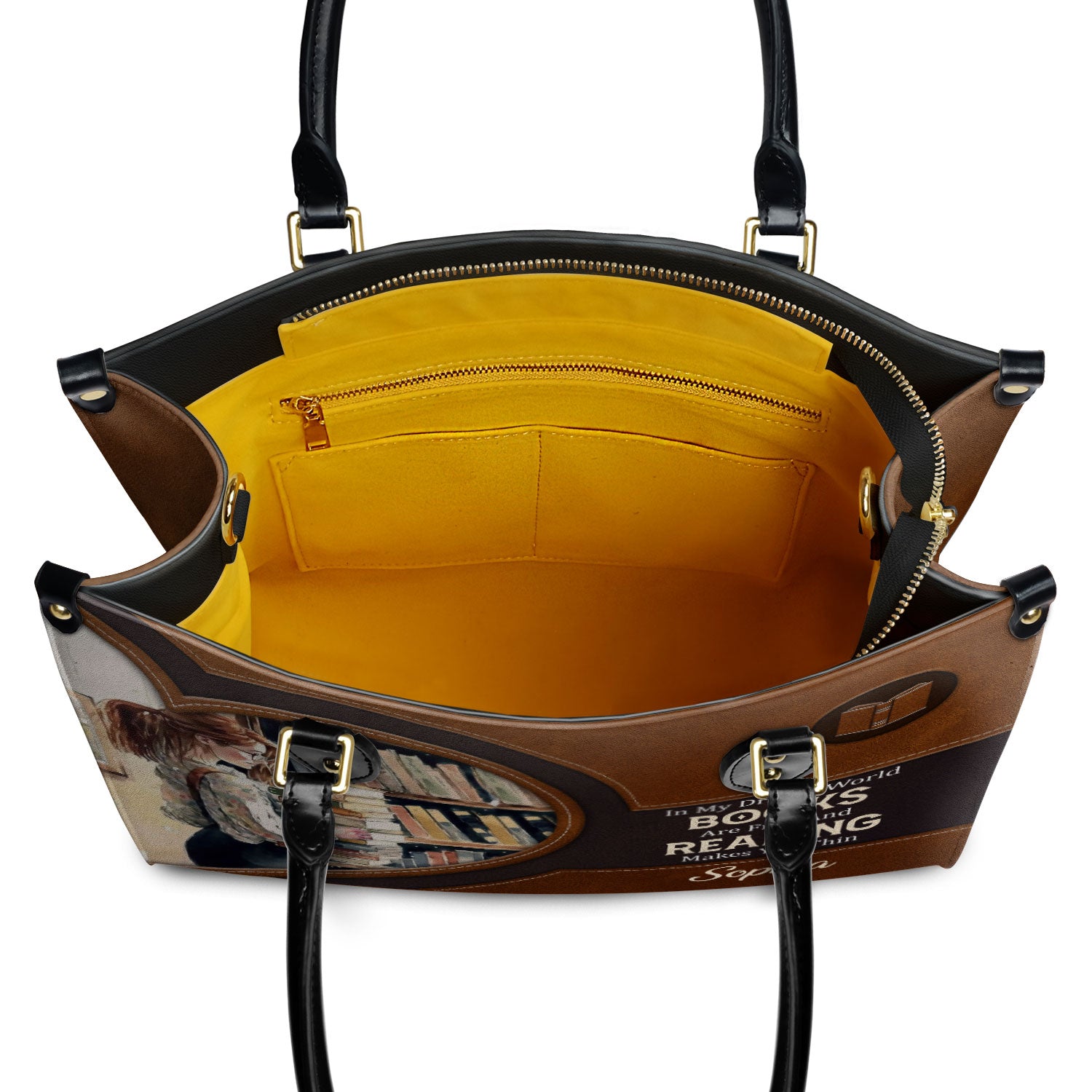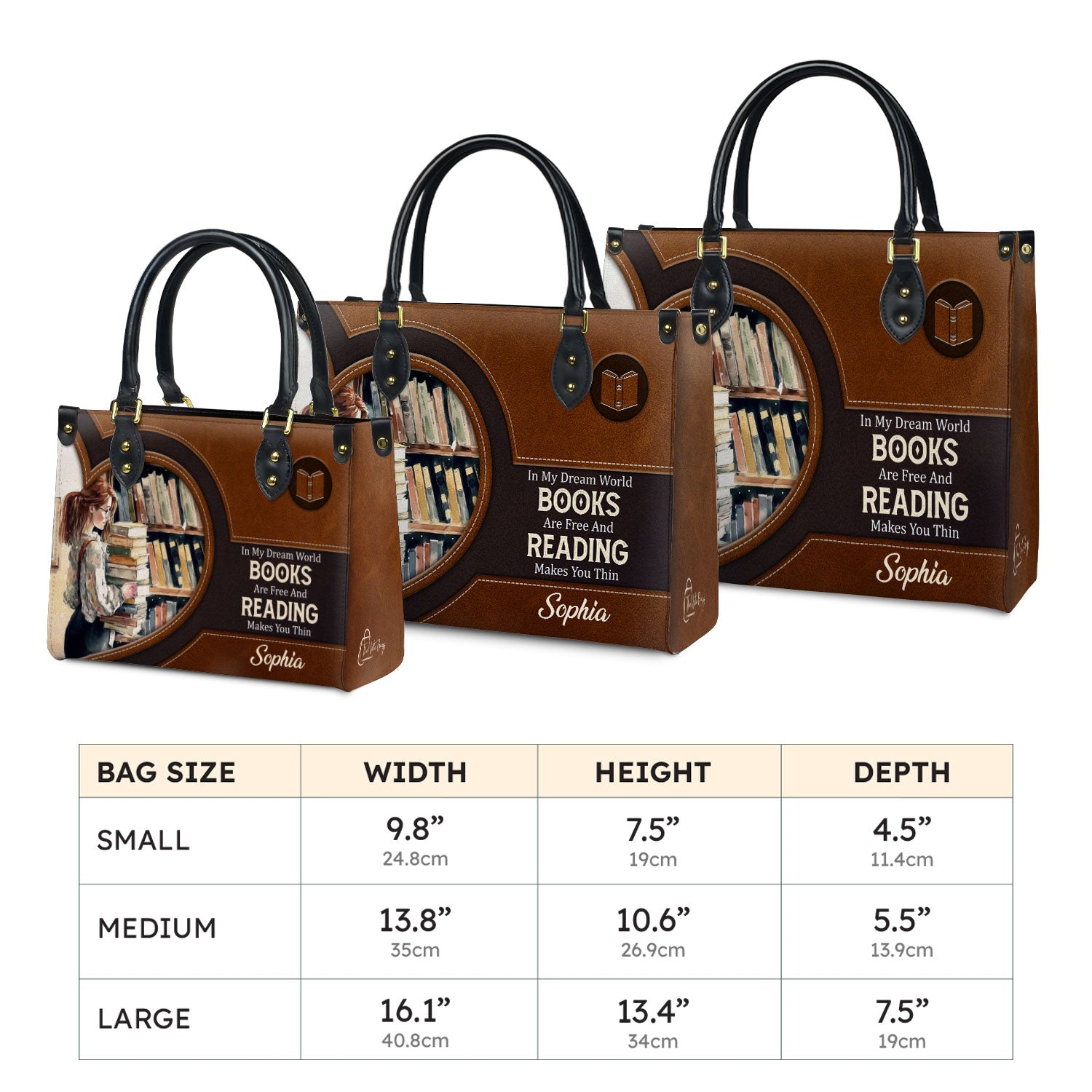 Product Name: In My Dream World Books Are Free And Reading Makes You Thin NQAY1702006A Leather Bag