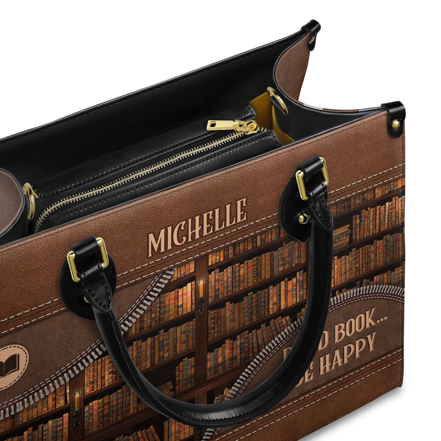 Our custom leather handbags feature a full zip closure that not only keeps your belongings safe and sound but also adds a touch of bookish style.