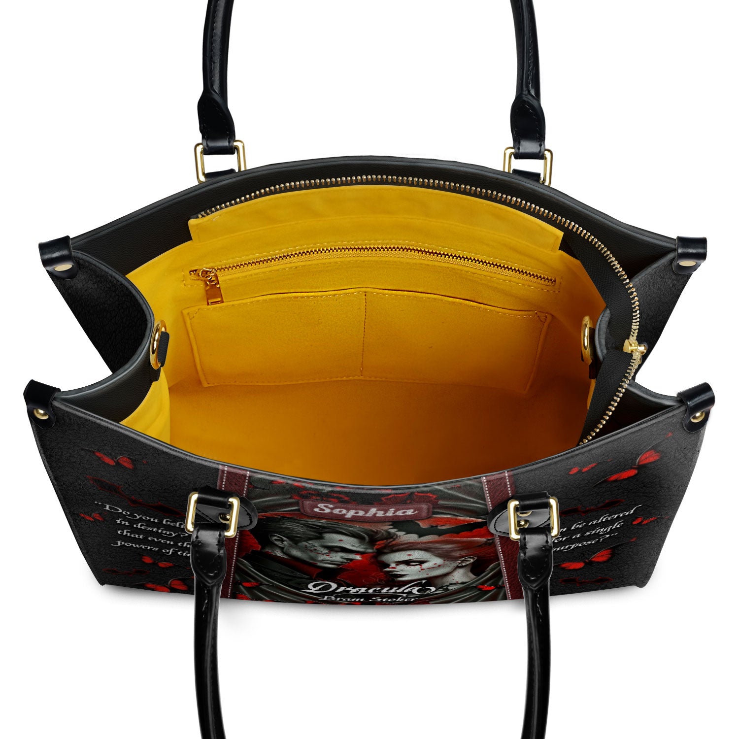 Our custom leather handbags feature a full zip closure that not only keeps your belongings safe and sound but also adds a touch of bookish style.