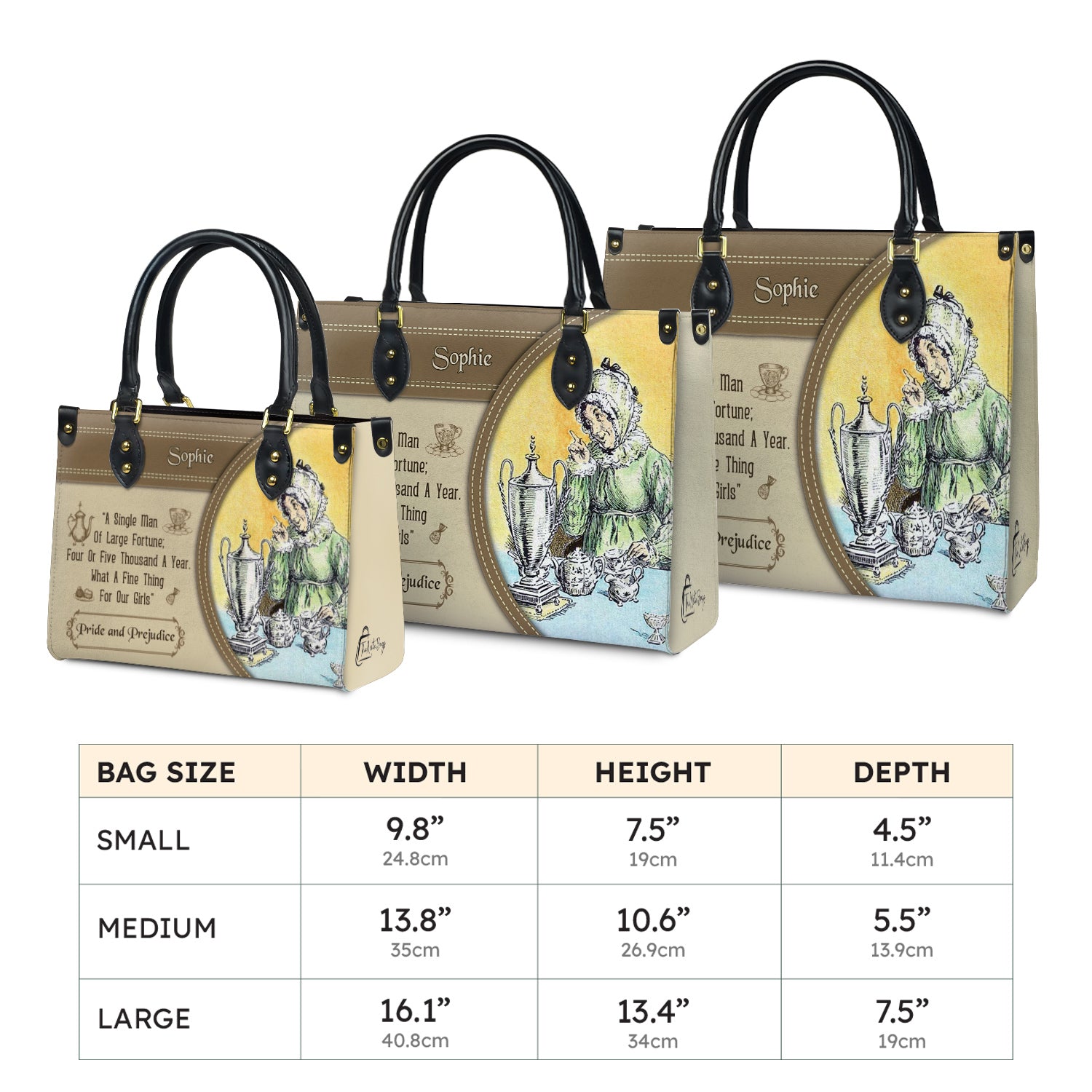 Product Name: Pride And Prejudice A Single Man Of Large Fortune Four Or Five Thousand A Year What A Fine Thing For Our Girls NQAY1003001A Leather Bag