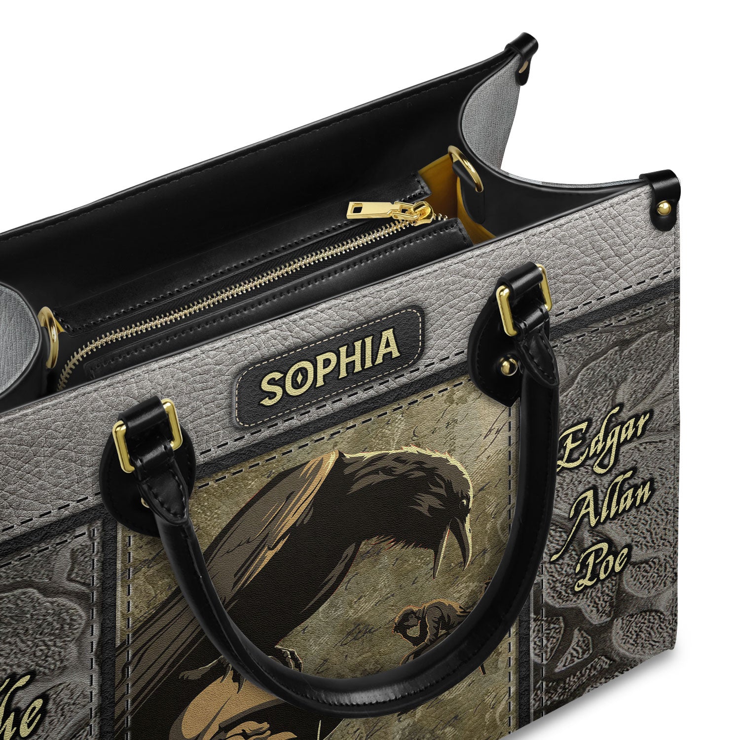 Our custom leather handbags feature a full zip closure that not only keeps your belongings safe and sound but also adds a touch of bookish style.